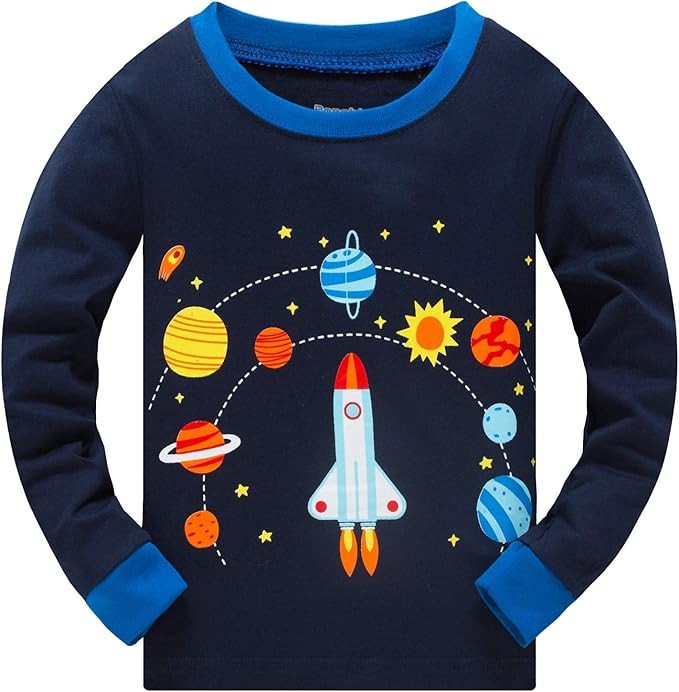 Akyzic Boys Pajamas Planet 100% Cotton Sleepwear Toddler Kids 2 Piece Long Sleeve Pjs 3-10 Years.