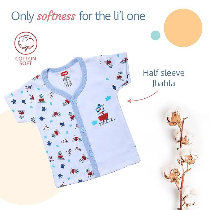 Newborn Baby Cotton Gift Set Of 5 Items, Open Half Sleeves Jhabla Vest- Tshirt, Pyjama, Cap, Mittens & Socks, Baby Clothes Set 0-3 Months