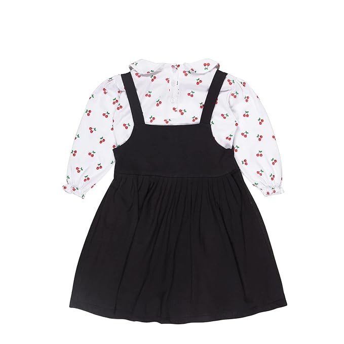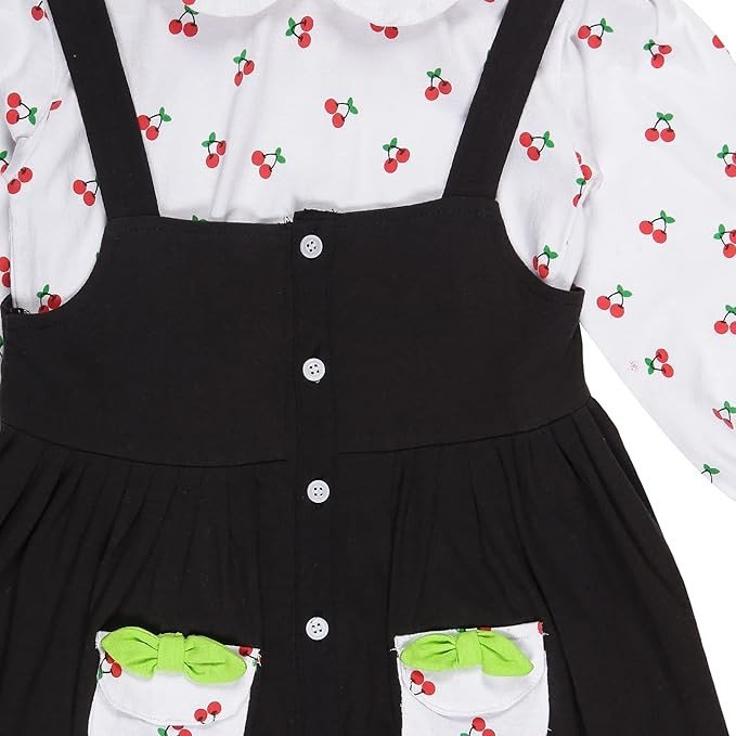 This frock is made from soft, high-quality, pure cotton fabric that is gentle on baby's skin. Neck : Round; Fit : Regular; Sleeves : Full This dungaree Tshirt set is perfect for any occasion, including parties, playdates, and everyday wear The toddler girls dress features an adorable design with frills and print all over. Product Care Instructions: Normal Hand Wash/ Gentle Machine Wash 2-4 Yer