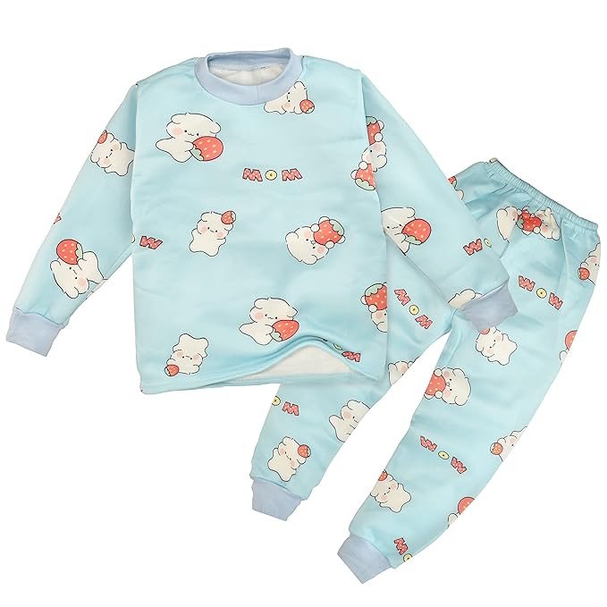 Random print of selected color will be delivered Available in various colors and prints Must have winter outfit for kids of age 1 to 5 years Bright and fun filled colorful cartoons, these full sleeve tee & jogger pajama PJ set are perfect for go getter boys and girls! Not only warm but also fun to wear. Let your little one cut capers with their buds in an upcoming event in these warm fur fleece full sleeve coordinated clothing set from Bold N Elegant.