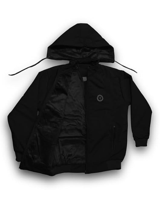 Fabric Men's Black Faux Leather Jacket with Zipper, Multiple Pockets, and Removable Hood Design