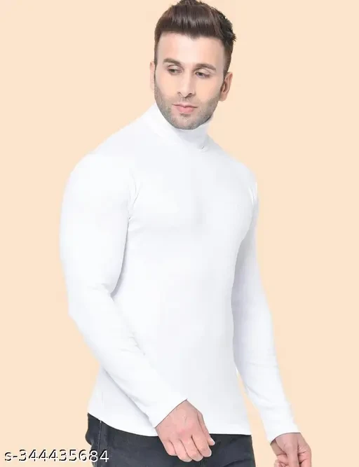 Name : High Neck Cotton Blend Tshirt For Men Ribknit White