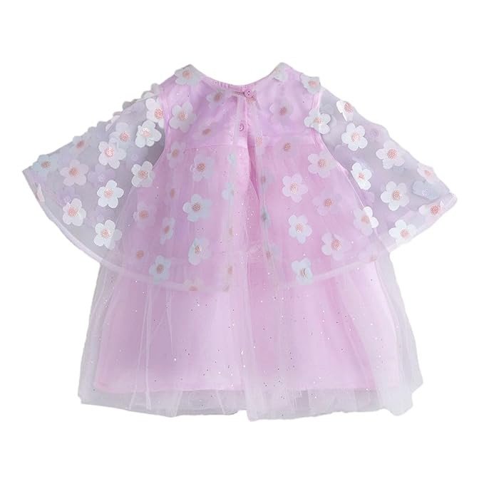 Material: 100% Cotton Package Includes: 1 Party Dress, 1 Cape Product feature: Floral applique, A-line, floral-embroidered cape and sparkly details Dimensions:- Party Dresses: Length: 96 cm , Chest: 56 cm The actual product may differ slightly in color from the one illustrated in the images. 3-5 Year