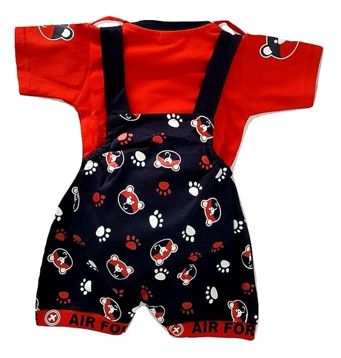 Material: Premium hosiery cotton Set of: Dungaree & T-shirt for 1-2 year Pattern: Printed Neck: Round neck Wash care: Gentle wash