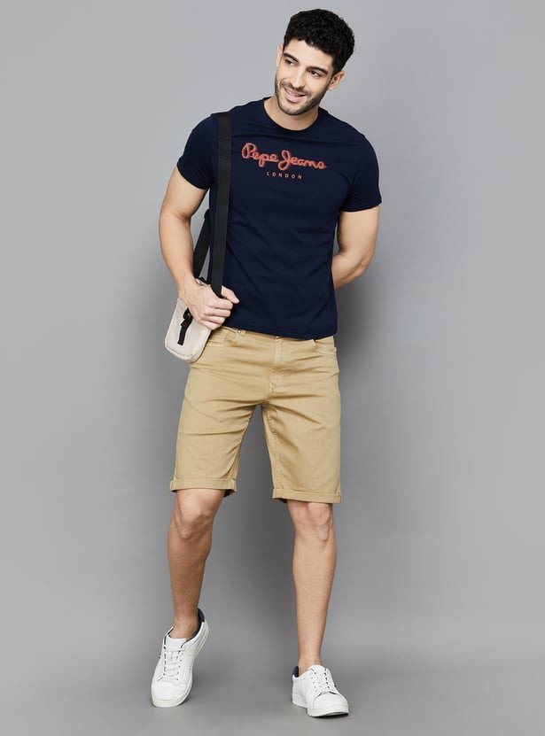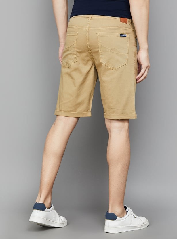 Step into these stylish 5-pocket shorts and let your fashion sense shine. Made from stretch solid denim, they offer a mid-waist that fits perfectly and a zip fly that glides effortlessly. The slim fit is designed to accentuate your silhouette beautifully.