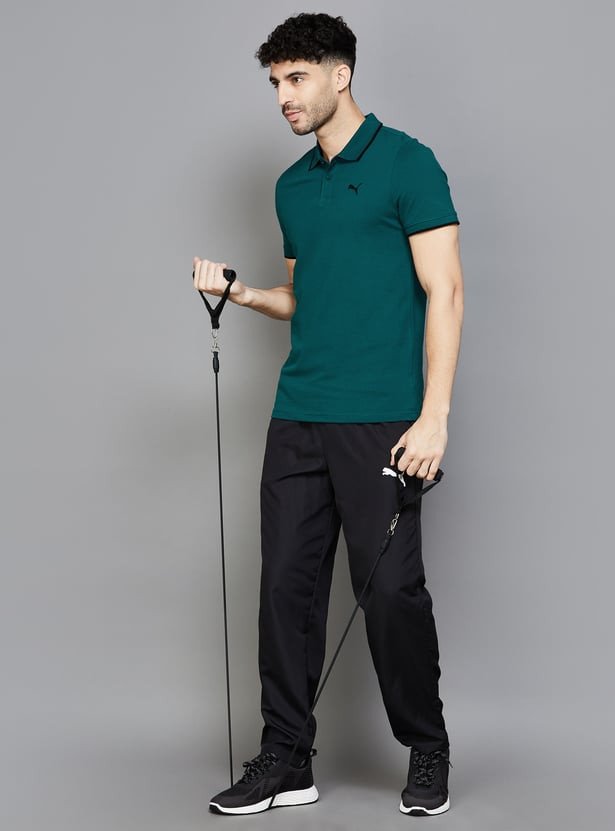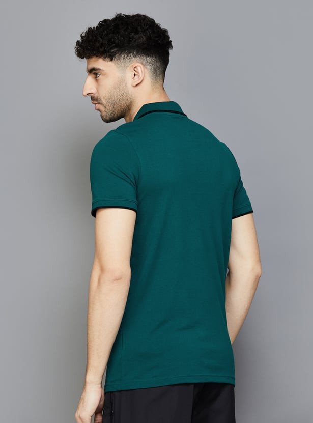 Designed with a solid fabric, this t-shirt features a polo collar, half sleeves, and button closure and is ideal to add to any wardrobe.