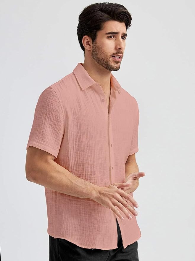 Men's Solid Cotton Blend Shirt | Casual | Plain | Half Sleeve | Black Shirt | Summer-Regular Fit