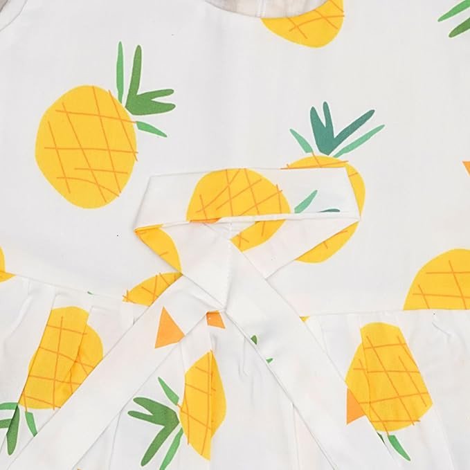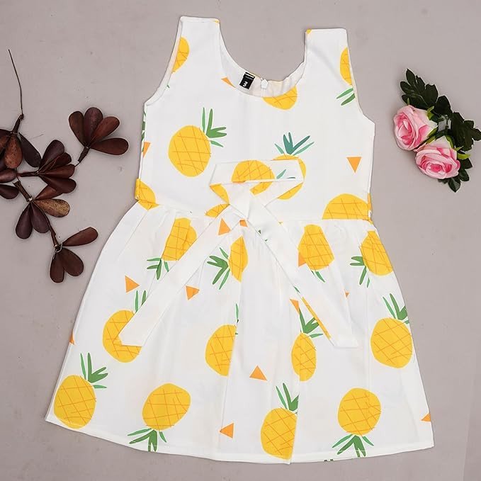 Soft and Comfortable : Made from premium quality, breathable rayon fabric that ensures maximum comfort for your baby's delicate skin. || Care Instructions: Hand wash preferrable, as contains 85% cotton and 15% polyster. Adorable Design: Features cute and attractive , colorful fruit printed designs that are perfect for everyday wear or special occasions. Versatile Use: Great for both casual outings and formal events, providing style and comfort. Perfect Fit: Sleeveless and knee length frock, Available in multiple sizes to ensure the best fit for babies of 1 to 6 years.|| There is Light color change variation due to photographic effect. Sizes available: Age : 1-2 Year - Bust : 10.5” , Length : 20” (All Size in Inch) 3-4 Year - Bust : 11.5” , Length : 23” (All Size in Inch) 5-6 Year - Bust : 12.5”, Length : 26” (All Size in Inch) Please Allow Slight 1-3cm Difference Due To Manual Measurement And If Your Kid Is Chubby, We Recommend Choosing