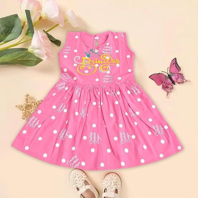 Sevgi Baby Girl's Pure Cotton Embroidered Over-All Printed Frock