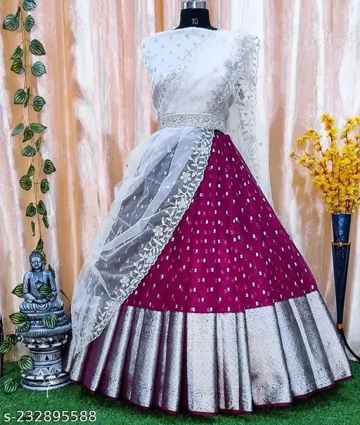 Name : south indian traditional half saree lehenga choli silver zari saree