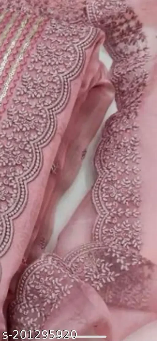 Name : Stylish Organza embroidered Unstitched Suit With Dupatta Set For Women (Pink) || Suit Material || Salwar Suit Fabric || Party Wedding Wear Suit Material || Ethnic Clothing for Girls Top Fabric : Organza + Top Length: 2 Meters Bottom Fabric : Shantoon + Bottom Length: 2 Meters Dupatta Fabric : Organza + Dupatta Length: 2 Meters Lining Fabric : Shantoon Type : Un Stitched Pattern : Embroidered Net Quantity (N) : Single This elegant and stylish unstitched organza suit set with dupatta is perfect for any special occasion. The top features embroidery with fine detailing and a solid hue. It has a round neck, three-fourth sleeves, and a chiffon dupatta. This well-crafted ensemble has a straight cut and is sure to add an elegant touch to your wardrobe. You can pair this with matching bottoms and accessories to complete the look. | Suit | Suit With Dupatta | Embroidered Suit | Unstitched Suit Set