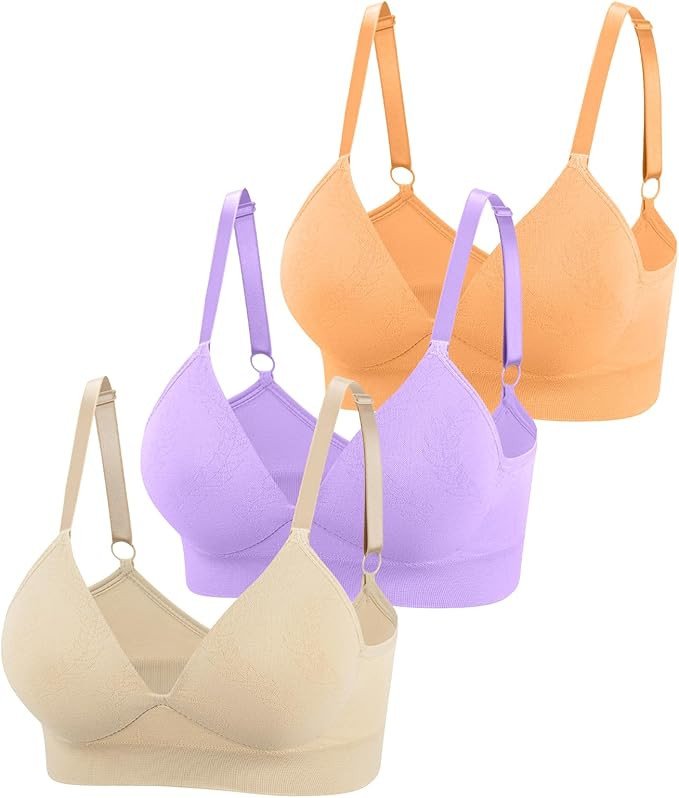 Eleplus 3 Pieces Deep V Wireless Bras for Women Seamless Comfy Bralettes Lightly Lined Multicolors Pack.