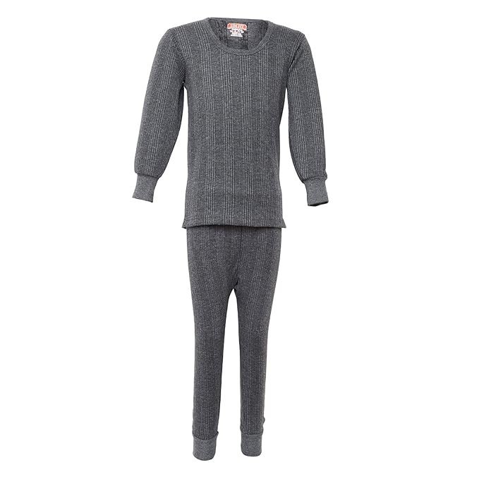 Kid's Thermal Winter Wear for Girls and Boys Round Neck Full Sleeve Top and Lower Set in Dark Grey