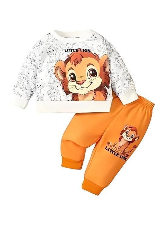 Kids Dress for Boys | Full Sleeve Round Neck Animal Printed Sweatshirt and Pant Clothing Set for Baby Boys-Yellow