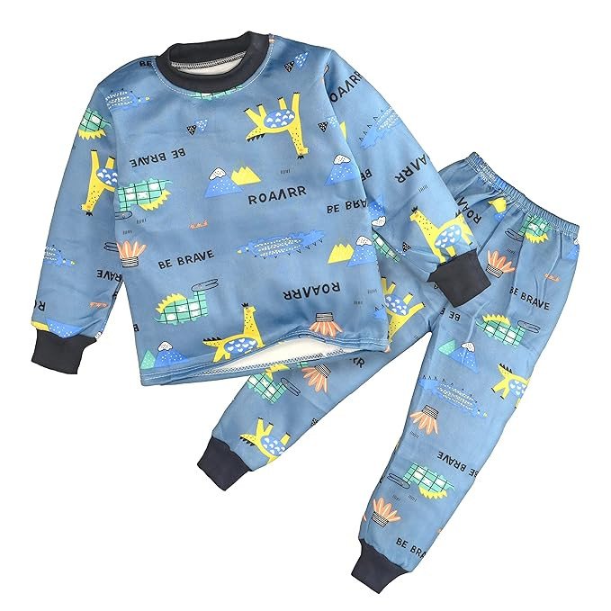 Cute Winter Warm Fleece Kid's Cartoon Sweatshirt Tshirt and Pajama Pant Clothing Set Random Mix Print for Boys